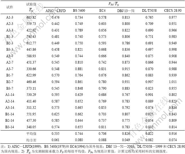 (3) 应用国内外规范所得计算结果比试验值小,现有规范对钢管轻集料混凝土的适用性还有待进一步研究。
