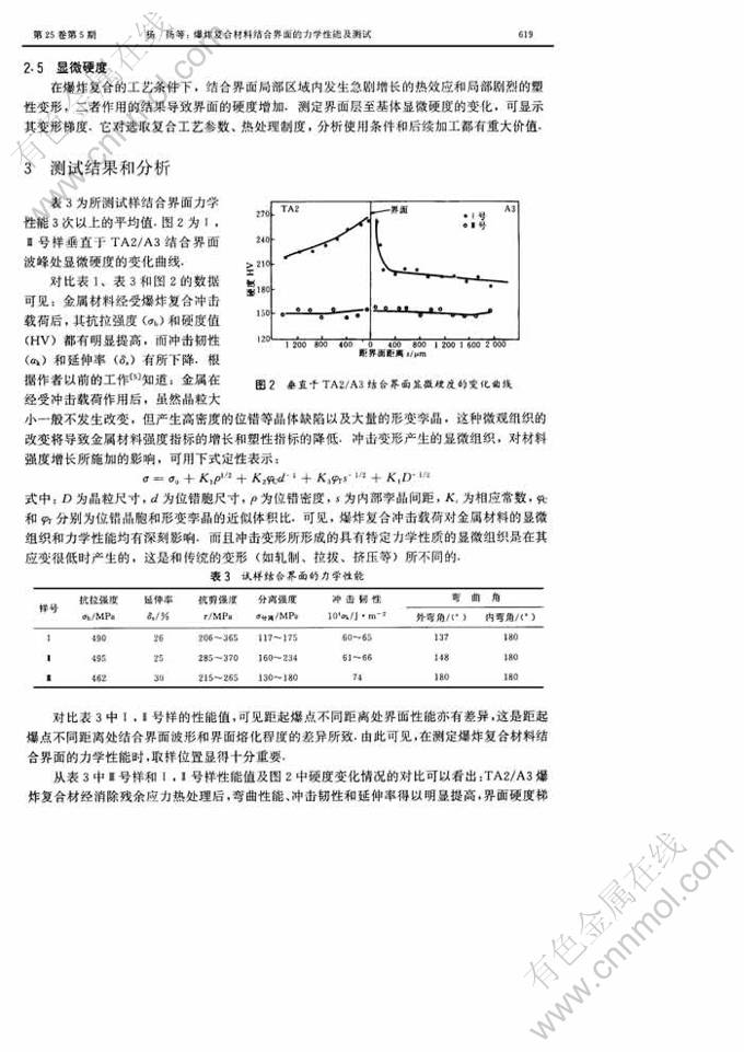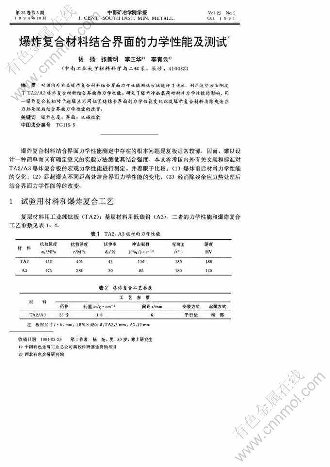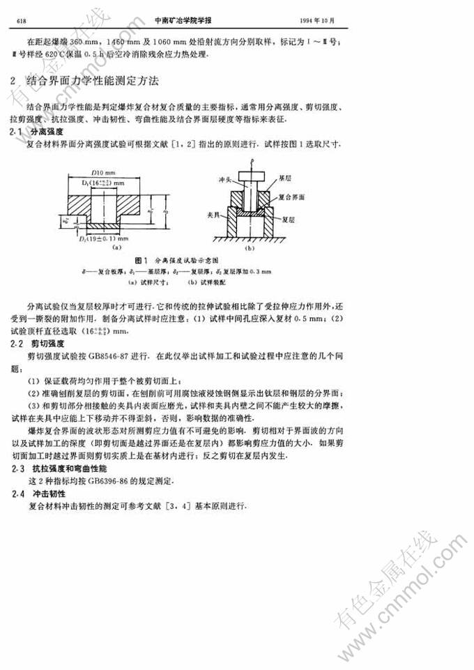 爆炸复合材料结合界面的力学性能及测试