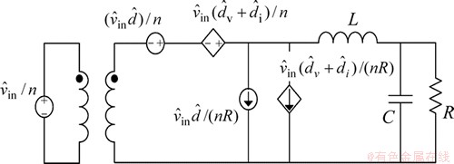 分别表示原边占空比扰动、输入电压扰动和输出电流扰动。通过对比Buck变换器得到FB-ZVZCS-PWM 变换器小信号模型,如图3所示。
