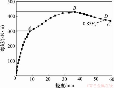 ,D点对应的挠度为试件承载力下降到85%极限荷载时的挠度