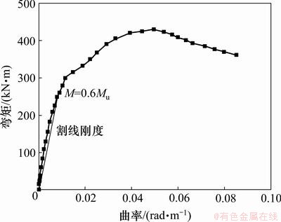 式中:um为组合梁的挠度;l为组合梁的计算跨度。根据式(2)及图6,可以得到试件的跨中弯矩-曲率关系曲线,如图10所示。