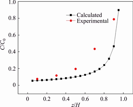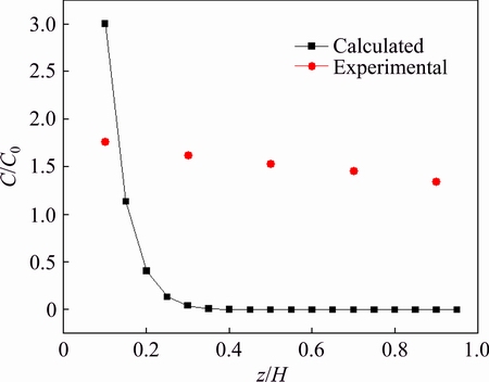 Figure 7 compares the experimental and calculated dimensionless impurity mass fractions of Cu in distilled metal. The calculated result indicates that the impurity mass fraction decreases sharply in the initial stage, and then decreases to about zero. The experimental result shows that the impurity mass fraction has a simple linear relation to the dimensionless height of z/H, quite different from the calculated result.