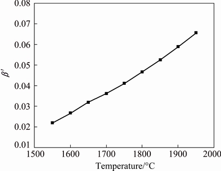 The mass fraction of impurity in the distilled metal calculated by Eq. (3) is shown in Fig. 3 for various values of β′<1. In the initial stage of the distillation, the mass fraction of impurity in the distilled metal is lower and increases slowly, but in the later stages of the distillation, the mass fraction of the impurity increases rapidly and the matrix metal is purified. With the modified separation coefficient increasing, the mass fraction of impurity in the distilled metal increases gradually, and the mass fraction curve slope also presents an increasing tendency; it means that the impurity can be separated effectively in distillation purification operations, and the impurity mass fraction is much lower in the distilled metal condensed in the initial and middle stages of distillation purification. Compared with Ti in distilled terbium, as seen in Fig. 2(a), the mass fraction curves present a similar tendency.