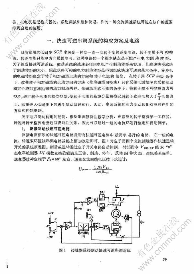 关键词:绕线异步机; 可逆调速系统; 可逆系统; 双向可控硅; 平波电抗器; 数学表达式; 基本参数; 可逆电路; 调速电路; 动态结构图