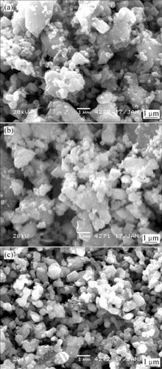The SEM images of LiFePO4 prepared in three different cooling ways are shown in Fig.3. In Fig.3(a), there is many sub-micrometer grains aggregated to regular particles within a diameter range of 1-4 μm, in which the grains have no obvious interface. More fine grains are observed in Fig.3(b) and the particle size range is 0.5-2.0 μm with irregular and rough shape. The particle distribution of sample under WQ is the most uniform. Meanwhile the particle becomes round and smoother, with a diameter down to 0.2-1.0 μm. In addition, with the increase in particle size and uneven particle distribution, the electrochemical activity and the polarization of the larger particles will decrease greatly. The SEM micrograph of the sample synthesized by a water quenching method shows that this method is beneficial to improving the electrochemical performance and diminish the polarization when the material prepared under WQ is used as an electrode for lithium ion battery. So, choosing more rapid cooling speed and shortening cooling time can effectively control the overgrowth of pure LiFePO4.