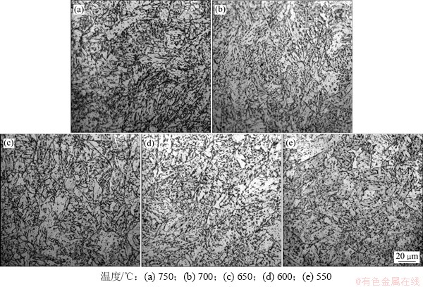 图4 X80实验钢不同超快冷终止温度的显微组织