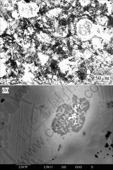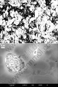 Fig.5 Micrographs of hot pressed TAN4: (a) Optical micro- structure; (b) SEM-BSE microstructure