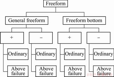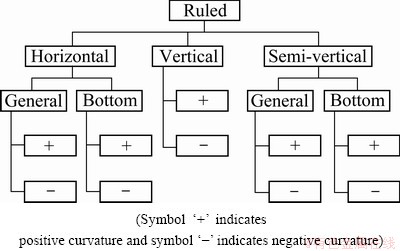 To overcome this, a classification of features based on principal curvatures was illustrated by LEFEBVRE and LAUWERS [9], which was then used by VERBERT et al [10] to define a feature based accuracy improvement methodology, FSPIF, for incremental forming. In this classification, four different feature types, planes, ruled surfaces, ribs and freeform surfaces were detected. However, this broad classification is not enough to characterize the behaviour of sheet metal parts uniquely. Hence, BEHERA et al [11] proposed a hierarchical taxonomy of sheet metal features that accounts for the feature behaviour based on the location, orientation, process criteria such as failure limits and the sign of the curvature. However, this taxonomy cannot be well exploited without systematic, algorithmic implementation.