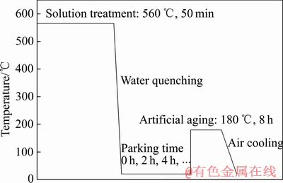 Fig. 1 Heat treatment flow of 6061 aluminum alloy with parking effect