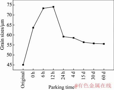 图3 不同停放时间6061铝合金的晶粒尺寸