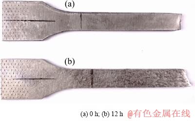 4) 随着停放时间的增长,6061铝合金断口的韧窝直径和深度不断增加,第二相粒子的尺寸也不断增大,形状由球状、带状逐渐转变为板状、块状。
