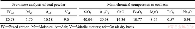 Table 3 Properties of coal powder (mass fraction, %)