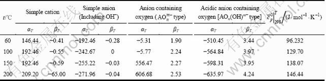 式中:αT和βT为给定温度下的常数,只与选择的标准态、溶剂、温度以及离子类型有关,而与个别离子性质无关。表1所列为60~200 ℃下4种离子类型的αT和βT[16]。