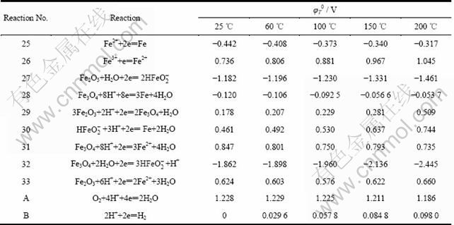 Table 6 φ0 values of various reactions in Fe-H2O system at different temperatures