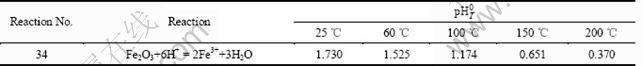 表7 Fe-H2O系各反应在不同温度下的pH0值