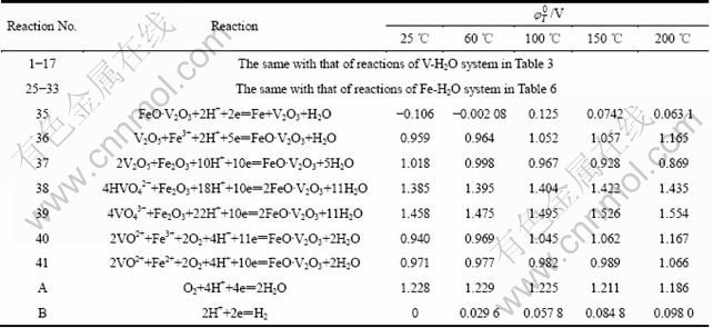 Table 9 φ0 values of various reactions in V-Fe-H2O system at different temperatures