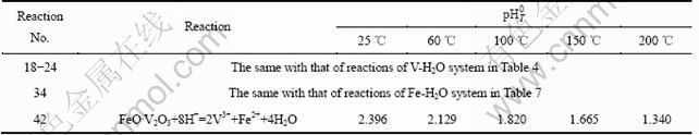 表10 V-Fe-H2O系各反应在不同温度下的pH0值