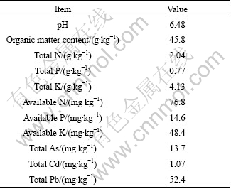 Surface soil (0-20 cm) was collected from arable land in the vicinity of typical smelting district of Zhuzhou City, Hunan Province, China, which belongs to allitic udic ferriols and develops from the typical quaternary red clay. Soil samples were air dried and then ground to pass through a 2 mm sieve. The basic physiochemical properties of soil are listed in Table 1.