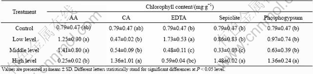 Table 4 Contents of chlorophyll in giant reed treated with amendments