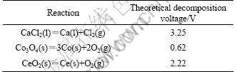 Table 1 Theoretical decomposition voltage of Co3O4, CeO2 and CaCl2 at 850 ℃
