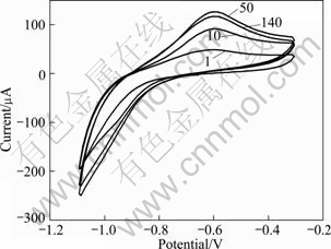 Fig. 10 Voltammogram curves of CeCo5 alloy microelectrode in 6 mol/L KOH solution (potential scanning rate: 50 mV/s)