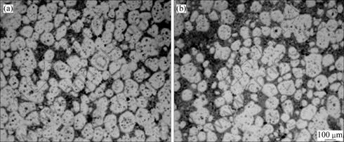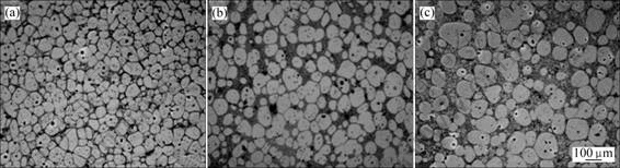 Fig.3 Microstructures of re-melted semisolid billets of AZ91D alloy: (a) 575 ℃, 10 min; (b) 575 ℃, 30 min; (c) 575 ℃, 60 min