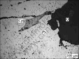 Fig. 8 Microscopy observation of vein chalcopyrite embedded in gangue