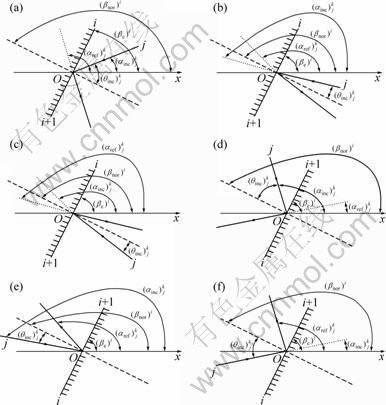 Fig. 5 Reflection of ray j on segment (i, i+1) for the kth time: (a) k=1; (b) k=2; (c) k=3; (d) k=4; (e) k=5; (f) k=6