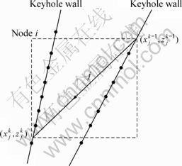 3) The laser source represented by the Gaussian intensity distribution and the keyhole profile are both discretized as shown in Fig. 4. The Gaussian beam intensity perpendicular to the focusing beam at r on the lens is