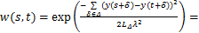 式中:w(s,t)为以t和s为中心的2个搜索块之间的相似度;t为以点t为中心的搜索块;M(t)为搜索域中全部点的集合;Z(t)为归一化常数,表示全部搜索块相似度之和。w(s,t)需要满足如下2个条件: