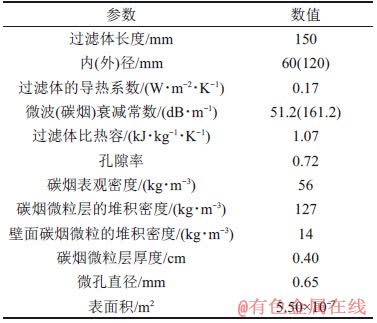 根据上述数学模型及假设,以通流式泡沫陶瓷作为过滤单元材料进行计算模拟。表1所示为微粒捕集器过滤体的主要结构参数设置情况[21-22]。