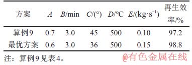 表6所示为以再生效率为评价指标的最优方案对比情况。从表6可以看出:对采用极差分析得到的最优参数组合进行仿真计算后,其再生效率为98.8%,而未经优化前的原再生效率为90.0%。最优参数组合的再生效率比原来的再生效率提高了8.8%,表明通过正交实验设计方法分析能够较迅速地找到1个较优方案。