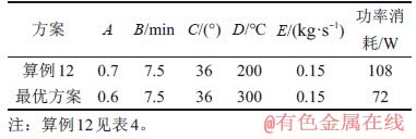表8所示为以功率消耗为评价指标的最优方案对比。从表8可知:对采用极差分析得到的最优参数组合进行仿真计算后,其微波功率平均消耗为72 W;而在原来的计算结果中,其功率消耗为100 W。最优参数组合的功率消耗平均值降低28%,因此,采用最优参数组合大幅度降低了再生过程中的微波功率消耗。