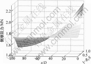 图2 侧摩阻力与(1-RfS)和x/D之间的变化关系图