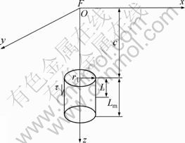 锚索的自由端在预紧力的作用下,锚固段则在锚固浆体表面产生侧摩阻力τ,而锚固浆体表面的侧摩阻力τ与作用在岩体表面的侧摩阻力是一对大小相等、方向相反的作用力。这2种力在半空间下的应力计算简图见图3。
