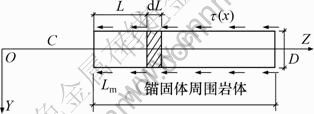 为了分析在锚固段剪应力的作用下对周围岩体的影响,对图4所示的微元体进行力学分析,结合摩阻力沿锚固段长度的计算公式(见式(8))。