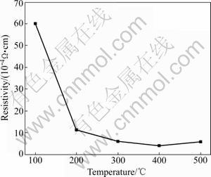 Fig.2 Dependence of resistivity of GZO/AZO(1:1) multilayer thin films on substrate temperature