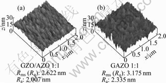 Fig.7 AFM images of GZO/AZO(1:1) thin films (a) and GAZO thin films (b) deposited at 400 °C