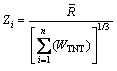 (其中:E为爆炸能量,ρe为炸药密度,cs为土中地震波速度,R为离开爆源的距离)。当炸药以TNT当量衡量时,可以用炸药当量WTNT代替爆炸能量E,对于多点集中炸药爆炸,采用总质量及平均爆距(