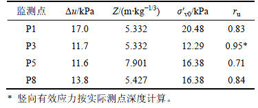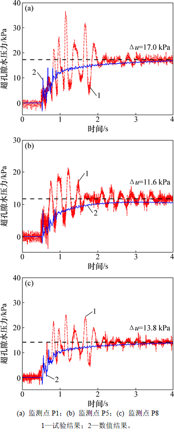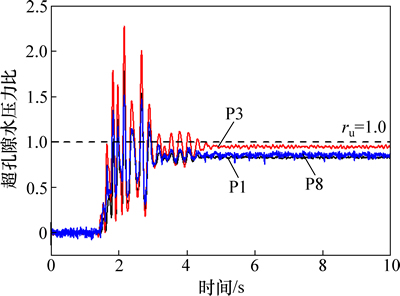 2) 孔隙水压力传感器的灵敏性对孔隙水压力的激发产生影响;