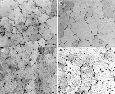 Fig.5 Microstructures of alloys homogenized under different conditions: