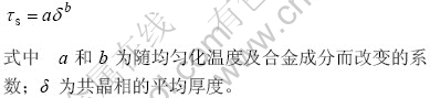 此式表明,温度稍有升高将使扩散过程大大加速。而非平衡共晶相在固溶体中的溶解时间又与其尺寸大小、均匀化温度及合金成分有关:
