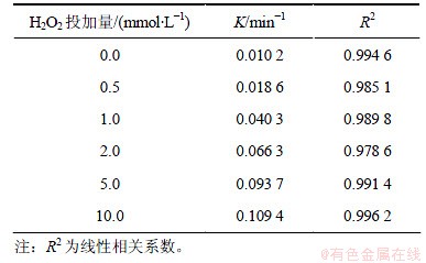 表1 不同H2O2投加量下2,4,6-TCP降解的拟一级动力学模型拟合参数