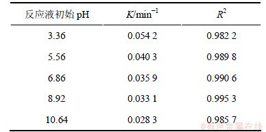 表2 不同pH条件下2,4,6-TCP降解的拟一级动力学模型拟合参数