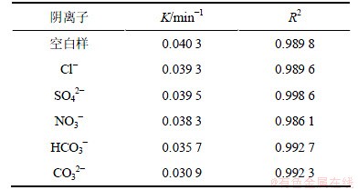 表3 不同阴离子条件下2,4,6-TCP降解的拟一级动力学模型拟合参数