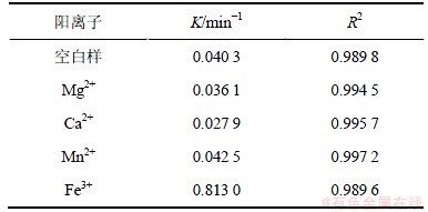 表4 不同阳离子条件下UV/H2O2降解2,4,6-TCP的拟一级动力学模型拟合参数