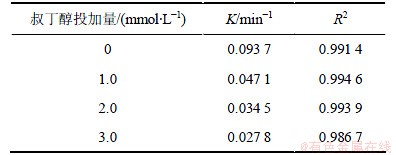 表5 不同叔丁醇投加量条件下UV/H2O2降解2,4,6-TCP的拟一级动力学模型拟合参数