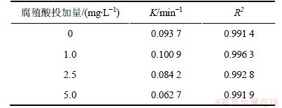 表6 不同腐殖酸投加量条件下UV/H2O2降解2,4,6-TCP的拟一级动力学模型拟合参数