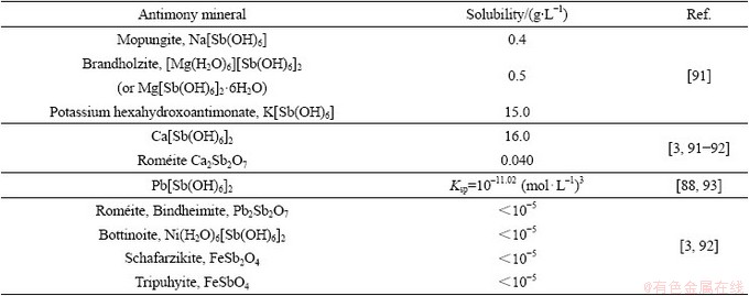 。SCHOLDER和MERBETH[65]在2 mol/L和16 mol/L的NaOH溶液中反应生成了锑酸钠类物质,包括NaSbO2、Na2Sb4O7和Na2Sb6O10·2H2O。在弱酸性或中性条件下(pH=2~10),锑以