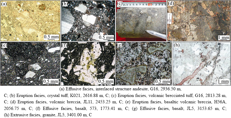 Figure 2 Lithology and lithofacies of volcanic rocks: